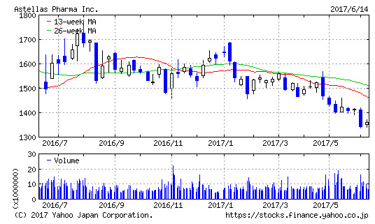 そのアステラス製薬の株価を、最近株価をウォッチングするのが趣味になりつつある母(購入は殆どしない)が、ポツリと