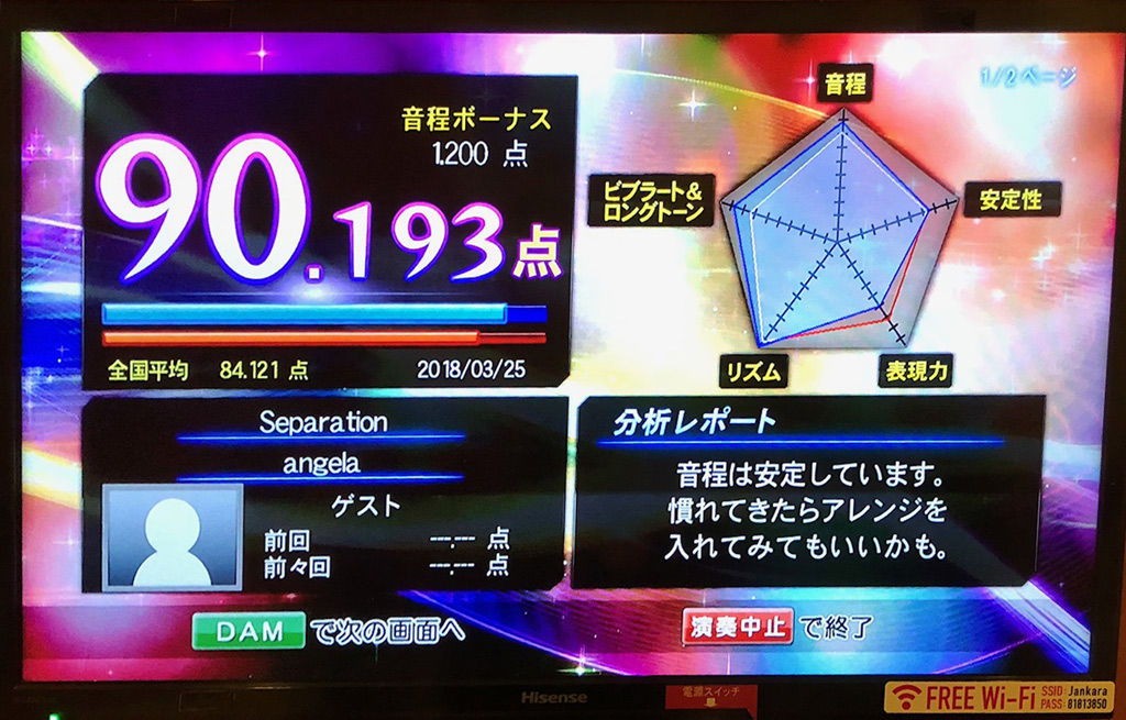 通常の得点に、音程ボーナスなる不思議な加点があって、ちょっと下駄をはかせてもらった感じ。
