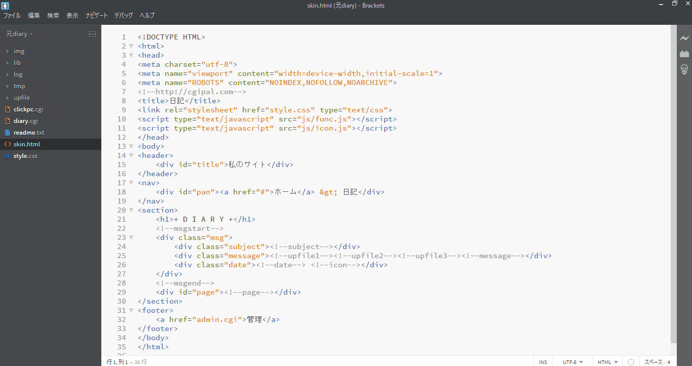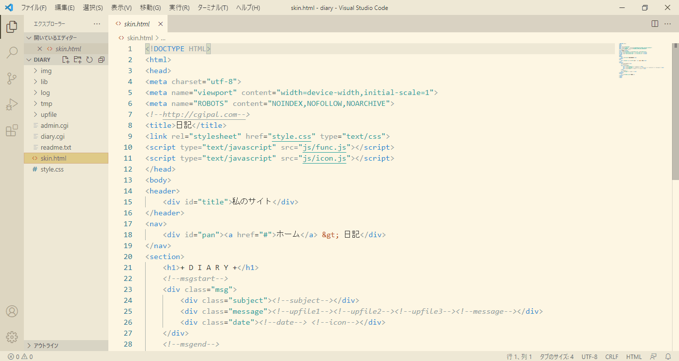 某サイトから頂戴したCGIの中のHTMLファイルを展開したところ。