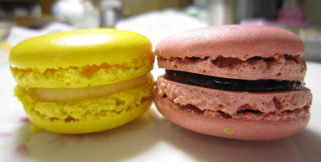 お初☆ ナニシテル 2010.02.232026.04.10 ナニシテル 生まれて初めて、マカロンなる洋菓子を食べました。「洋風モナカ」と言っちゃっていいんだろうか。生地と挟まれているクリームとの味&食感のハーモニーに、打ちのめされてすっかり虜になりました。 あ写真撮るの忘れてた。 悔しいので、2/26に写真追加!もう、食べちゃって無いけどね!!